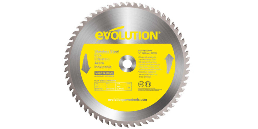 Vysoko kvalitná okružná píla s tvrdokovovým hrotom od spoločnosti Evolution Power Tools. Určené na rezanie nerezových profilov, plochých tyčí a plechov.